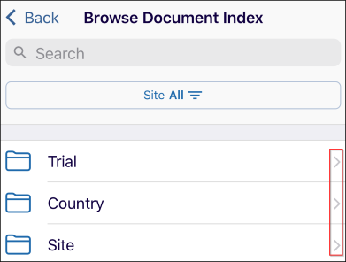 - Click on the Back button, and on the Browse Documents Index screen, click on the ‘>’