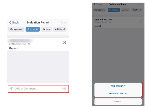 - Click the Comments tab to add a comment. Click the three-dot menu to edit or remove