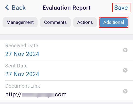 - Click the Additional tab to add the ‘Received Date’, ‘Sent Date’, and the Document Link.