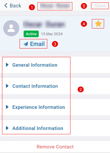- Make the required edits by accessing the General Information, Contact Information, Experience Information, and Additional Information tab.