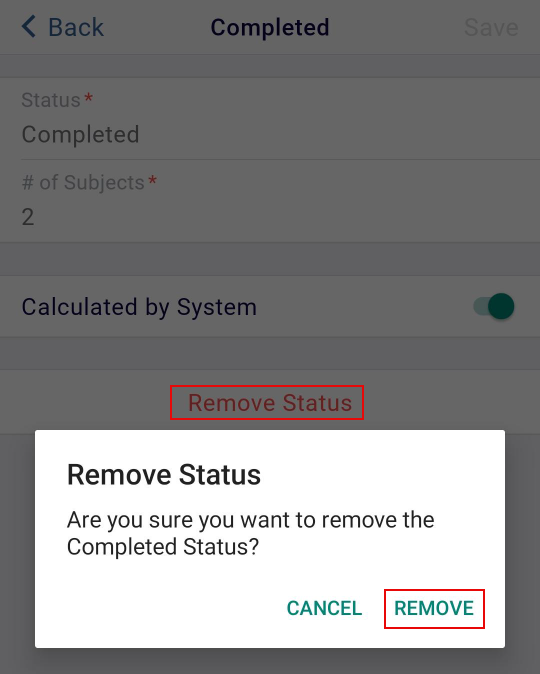 - On the Add Status page, optionally enable the Calculate by System toggle button. If the toggle button is turned off, the user has to manually enter the site’s enrollment statistics for the site at the time of the site visit.