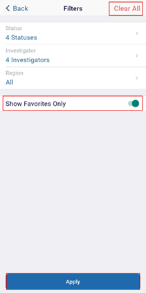 - Optionally enable the Show Favorites Only toggle switch to display the sites marked as favorites.