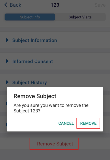 - On the Remove Subject confirmation popup, click on the REMOVE button.