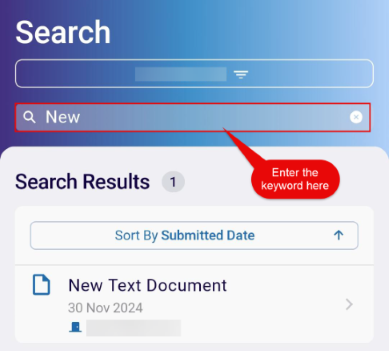 - Optionally, enter a keyword in the ‘Search for documents’ search box to look for a