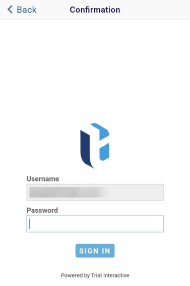 biometrics setting is disabled, enter the Username and Password on the Confirmation screen