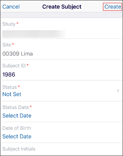 - On the Create Subject screen, fill in the mandatory details and click on the Create button.