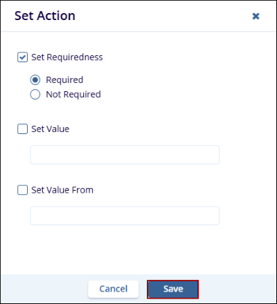 - On the Advanced Validation screen, the action appears against the field. Click on