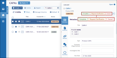 - Once the CAPA is successfully resolved, all the authorities for