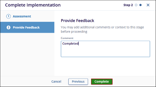 Implementation form, and click on the Complete button.