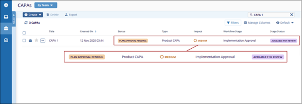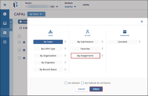 - Additionally, users can access the CAPA record assigned to them by setting the My Assignments view from the dropdown at the top.