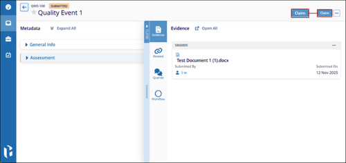 - Once the assigned authority clicks the Claim button, the record is claimed by