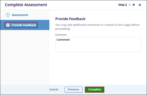 - Click on the Complete button, fill in the necessary details in the Assessment