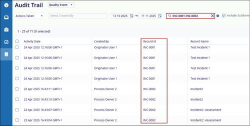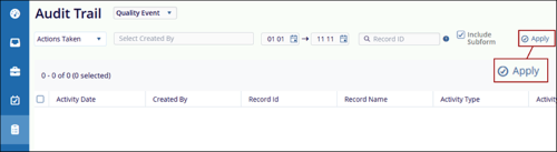 Record ID Filter: The Record ID field allows users to retrieve audit logs for