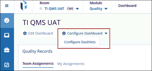 The Configure Dashboard helps the user to arrange the dashboard as required. This includes Configure Dashlets dashboards.