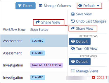 - Open the View menu at the top-right of the Grid and select the Share View