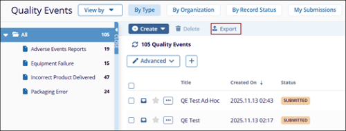 - Select the Quality Events tab from the left-hand navigation pane and click the View By dropdown.