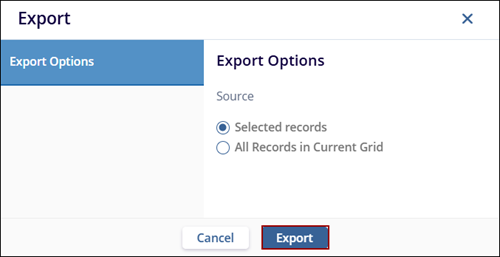 If records are selected the Selected Records option is activated.