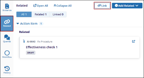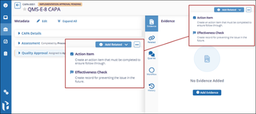 In addition to creating a CAPA record using the CAPA modal, users can also create a related record linked to that CAPA.