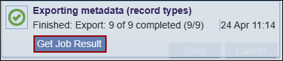 - Click on the Get Job Result button on the Exporting metadata dialog box and