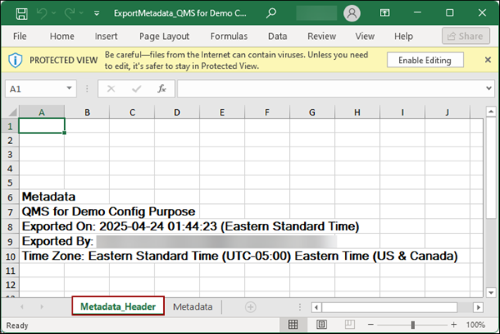- On the downloaded file, click on the Metadata_Header tab to view details like Room