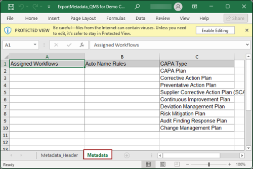 - Click on the Metadata tab to view the details about the record types.