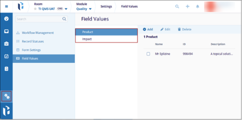 The Field Values section allows users to define the products and edit the Impact field values on the form.