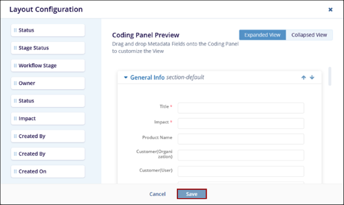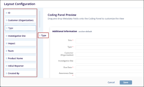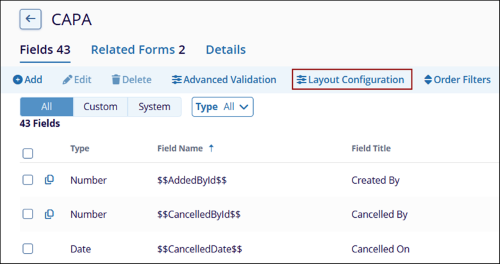 - Select Layout Configuration from the top menu bar on the Fields tab.