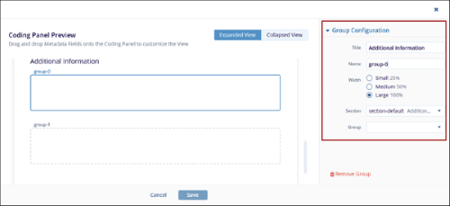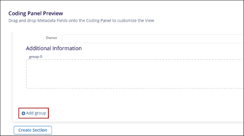 - Within the Coding Panel Preview section, click on the +Add Group button.