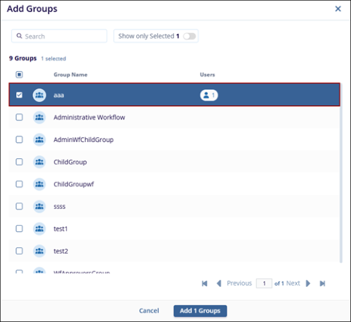 - Expand the Add button and click the Add Groups option. The Add Groups pop-up