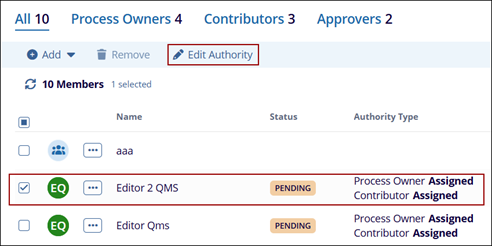 - Select the checkboxes next to the Users/Groups for which the authorities need to be edit from the Members page grid view.