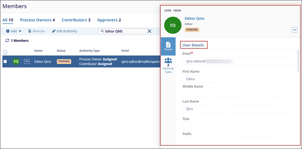 Note:Ensure that the selected Users/Groups are not assigned by any of the Regulatory Authorities types.
