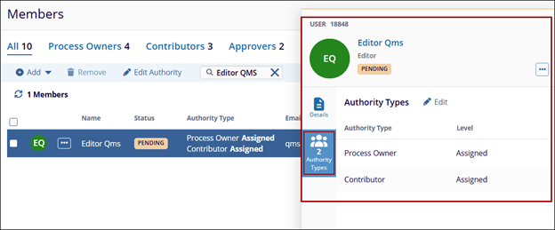 - The user can see the Assigned Authority in the Authority Type column on the main