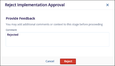 - On the Reject Implementation Approval dialog box, enter the necessary comments and