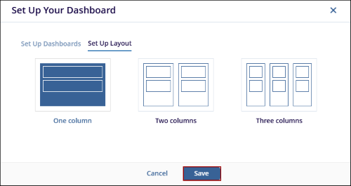 The Set-Up Layout allows users to customize the visual structure of the dashboard by choosing a column-based layout. This ensures that the dashboard is organized according to user preferences. The user has the option to select from one, two, or three Columns.