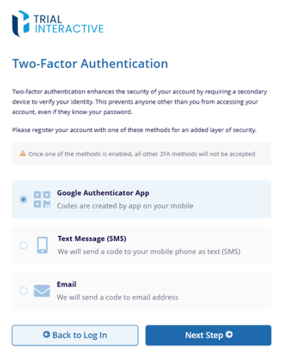 Follow the steps below to log in with Trial Interactive:- Using your preferred internet browser, navigate to https://www.trialinteractive.com/