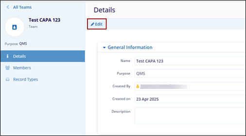 To access and edit details on the Teams Details page, follow the steps below.