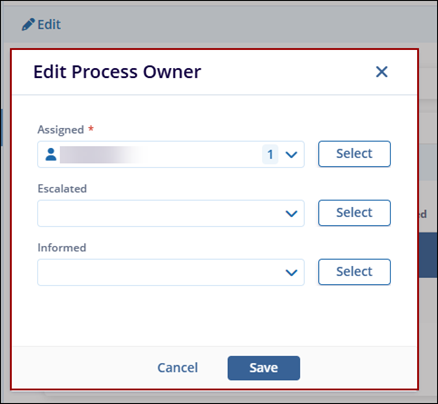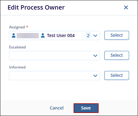 Note:Follow the same steps for the Escalated and Informed options within the Edit Process Owner pop-up window.