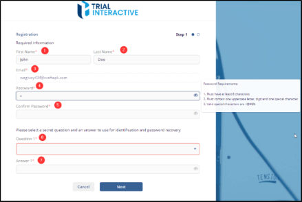 - Create a secure password, then re-enter it in the Confirm Password field to verify.Note:Hover over the Password field to view the tooltip with specific password requirements.
