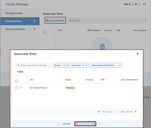 - The Associate Sites pop-up window is displayed.