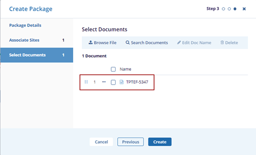 - Click the Create New option. The Create Package pop-up window is displayed.