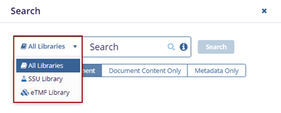 Expand the All Libraries arrow to search from the SSU Library or the eTMF Library.