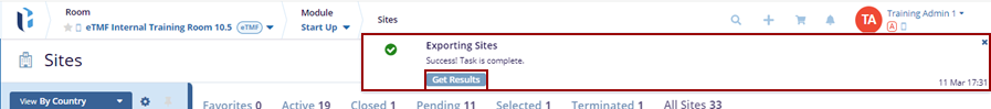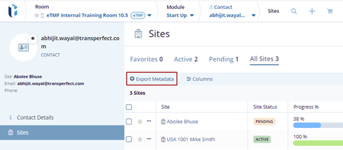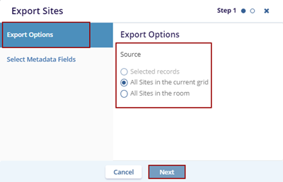 - All Sites in the room: Choose this option to export metadata for all sites displayed in the room.