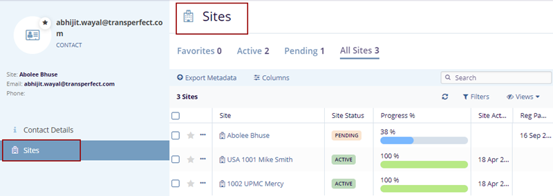 - All Sites in the current grid: Choose this option to export metadata for all sites currently displayed in the grid.