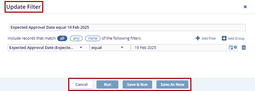 • Save & Run – These filter changes will be saved and then get updated in the current view.