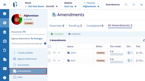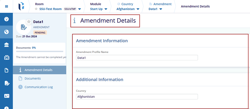 - Click on the name of the Amendment. The Amendments Details page is displayed.