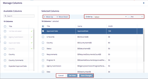 - Click an appropriate option from the following: Cancel, Set View, or Save Changes as required.