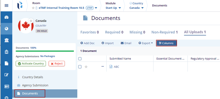 - Click the Columns button displayed