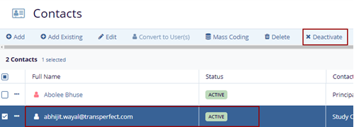 To deactivate a contact, follow the steps below: