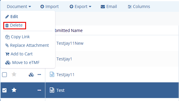 1. Select the checkbox of the document to be deleted.