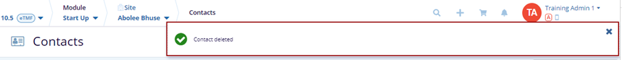 - Click on the Delete button. The notification message is displayed on the top right of the screen.